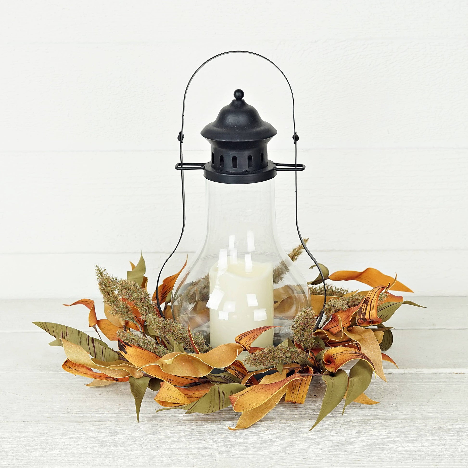 16-inch diameter (6.5inch center) Wreath of orange and green mixed herb leaves and heathers, a lively beautiful wreath for Fall Harvest season, can be used as a wall wreath and a table center piece, or a candle ring, Fall Floral, Thanksgiving Decorations, Farmhouse Decorations