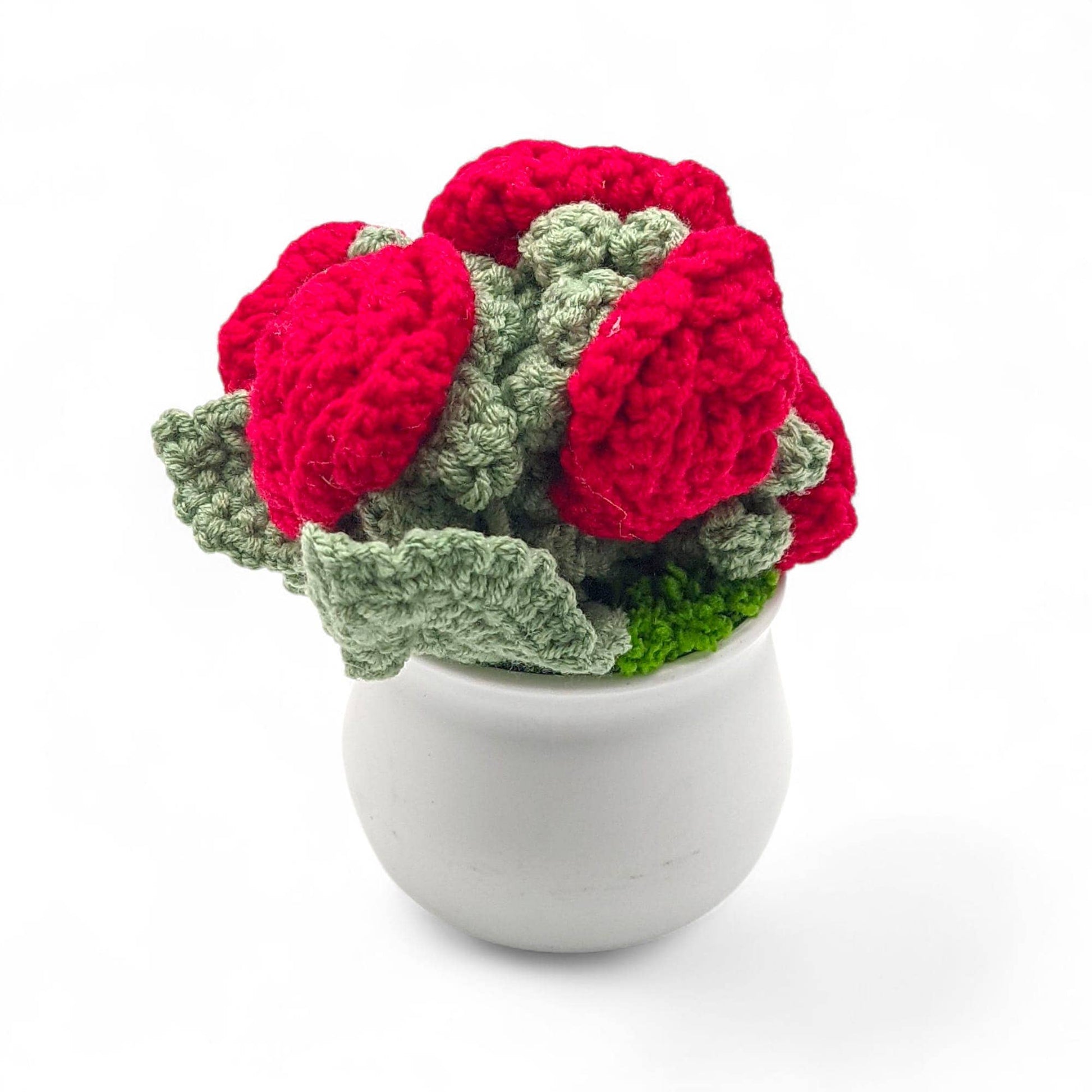 6-Bud Crochet Rose Flower with Pot – Assorted Colors