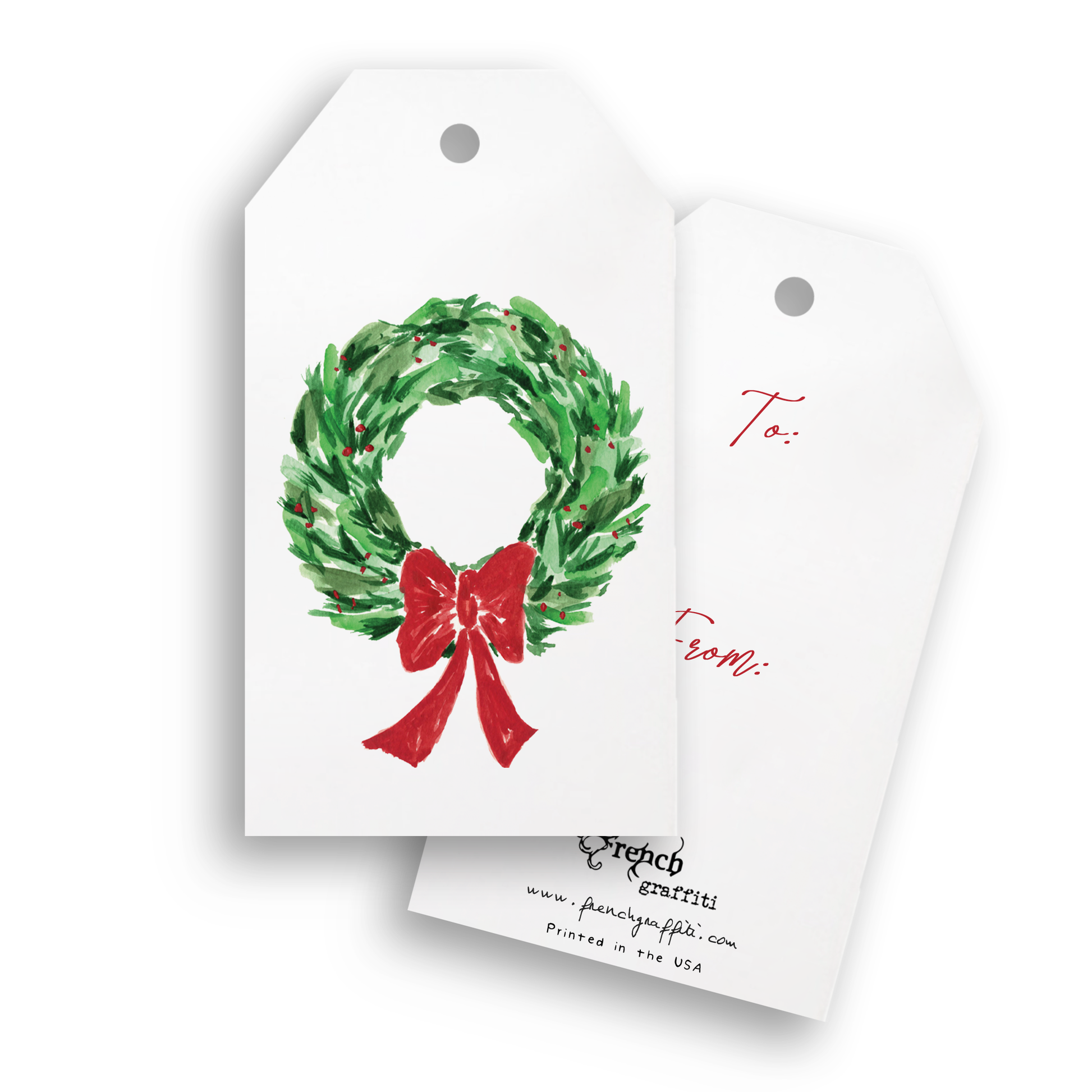 Christmas Wreath with Red Bow Gift Tags | Pack of 4