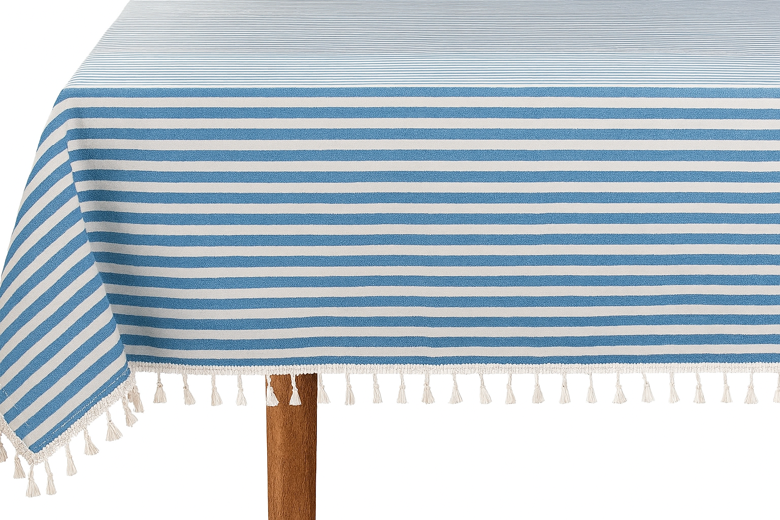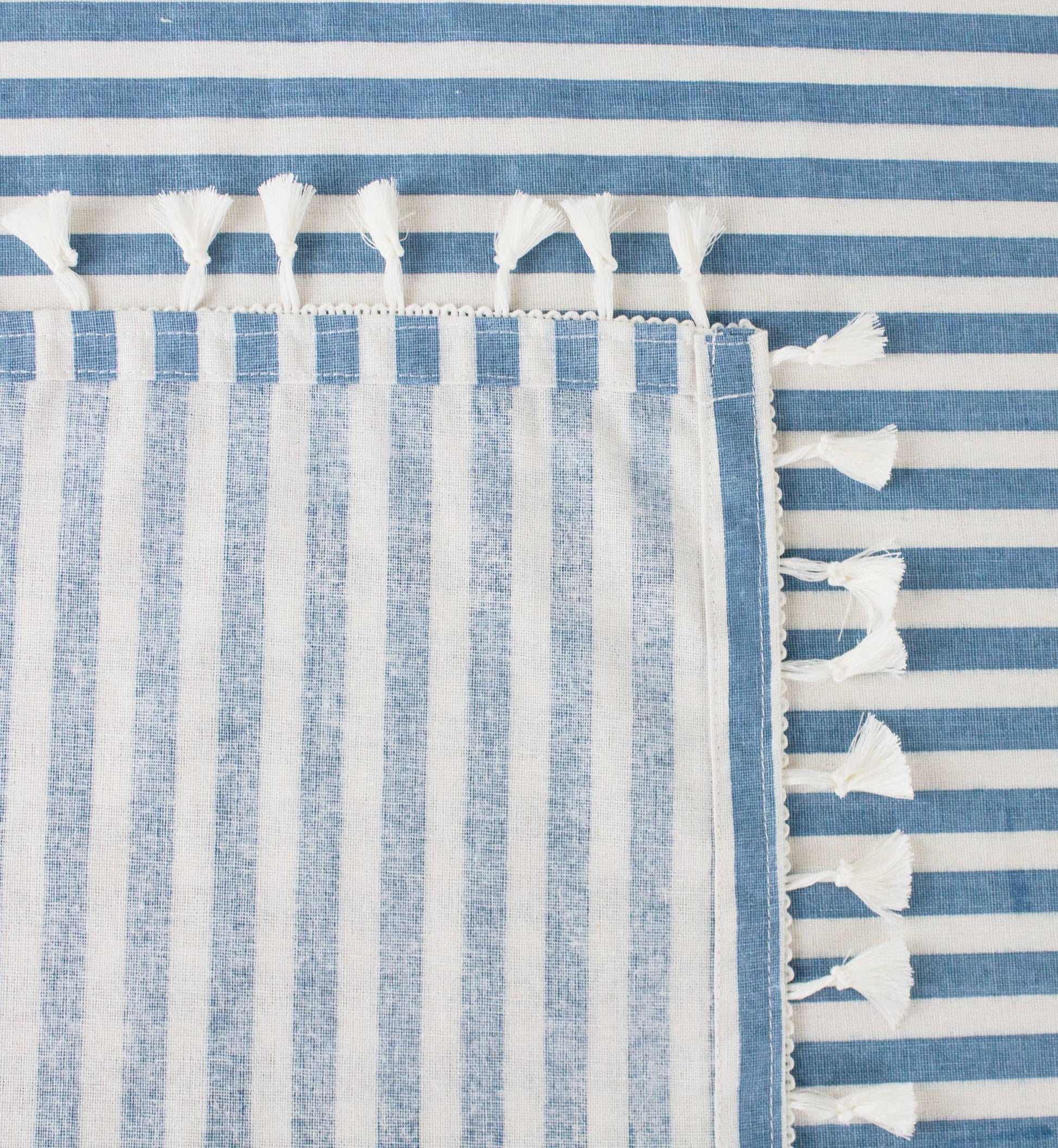 French Blue Simply Striped Tasseled Cotton Blend Tablecloth