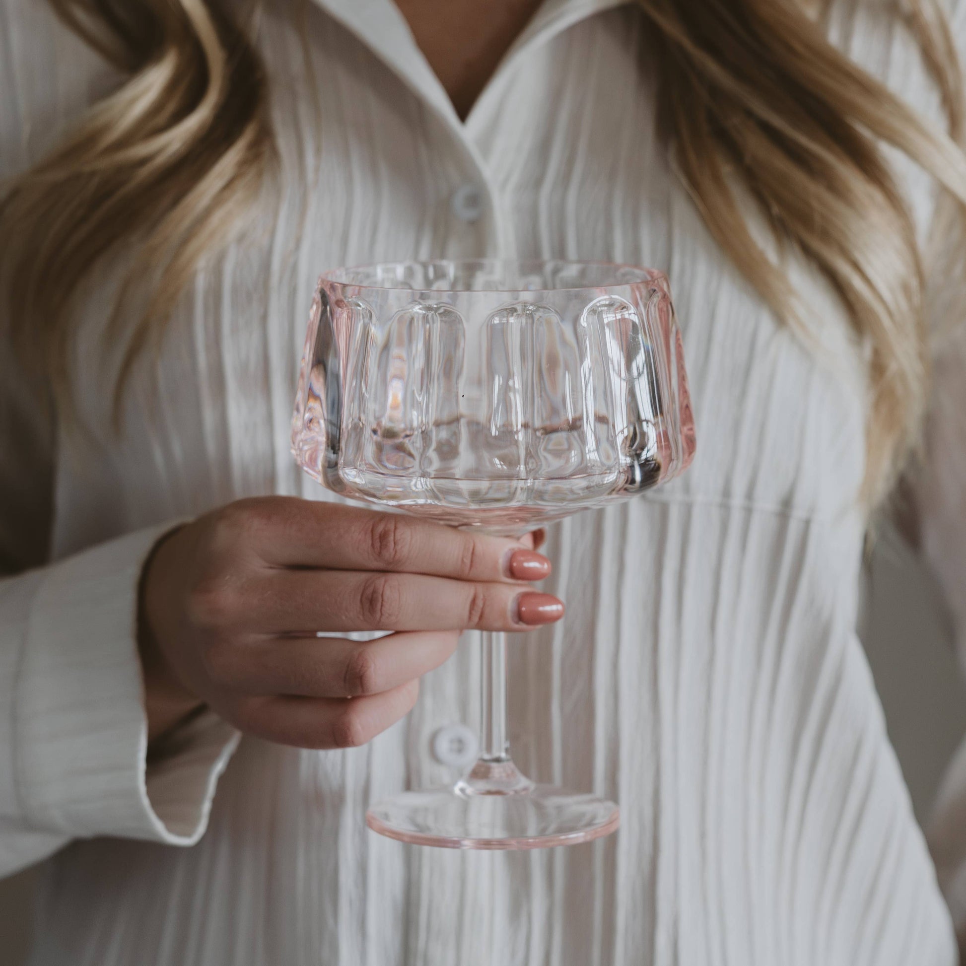 • Design: Crystal Clear Tinted Pink Coupe Glass