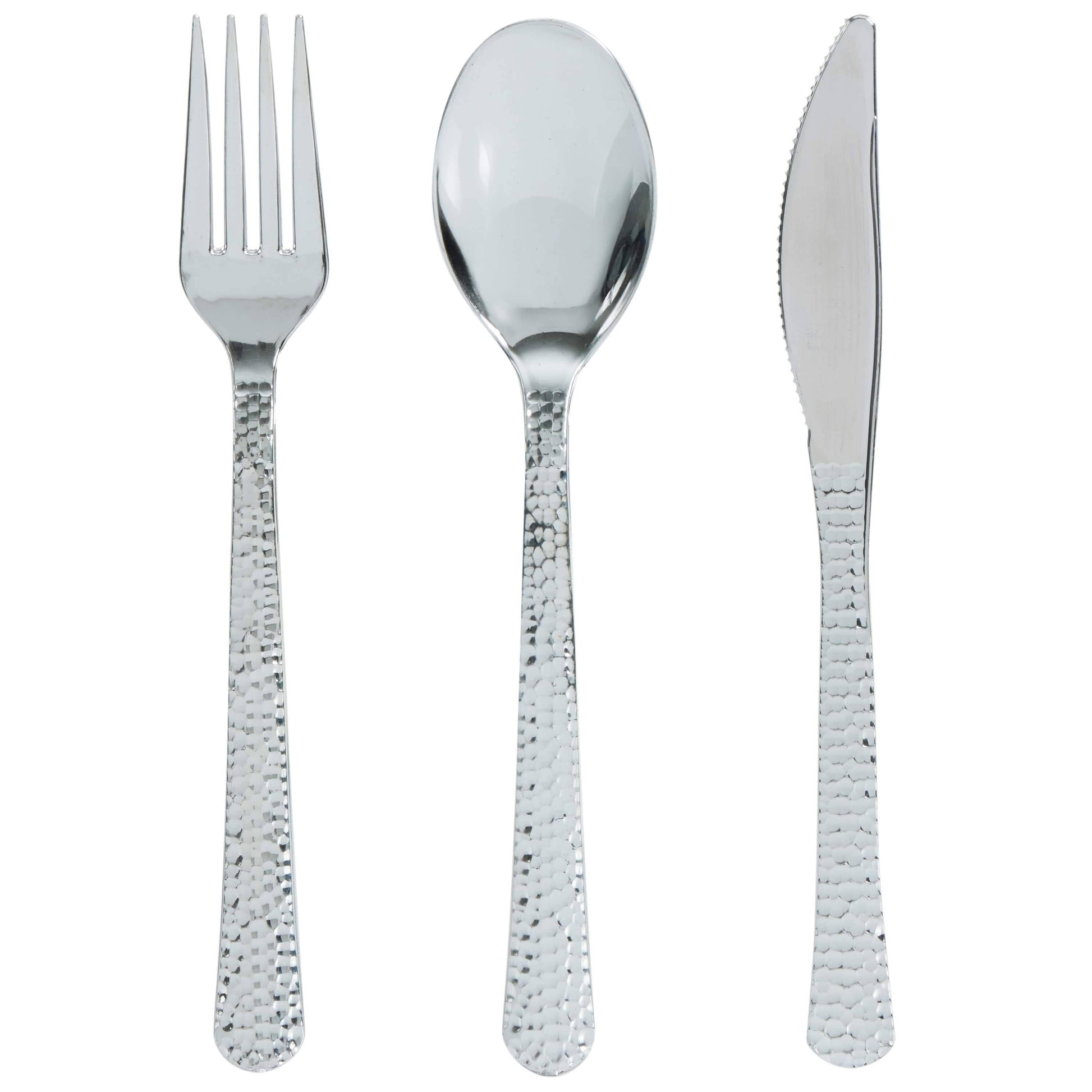 Silver Hammered Plastic Cutlery Combo Set | 160 Pieces