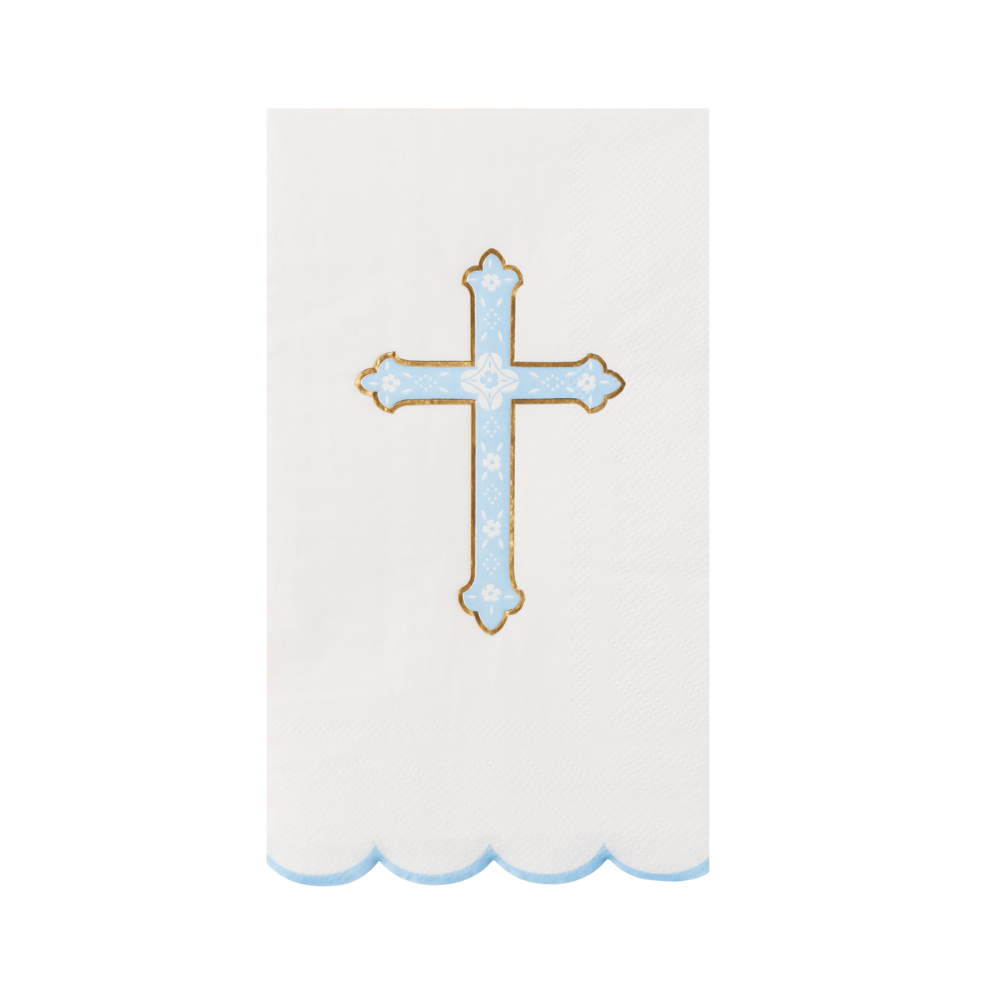 Add refinement to your party table with our Sky Blue Cross Guest Towels. Perfect for baby showers, first communions, and baptisms, these elegant towels pair beautifully with our Dove Sky Blue Small Plates to wow your guests.