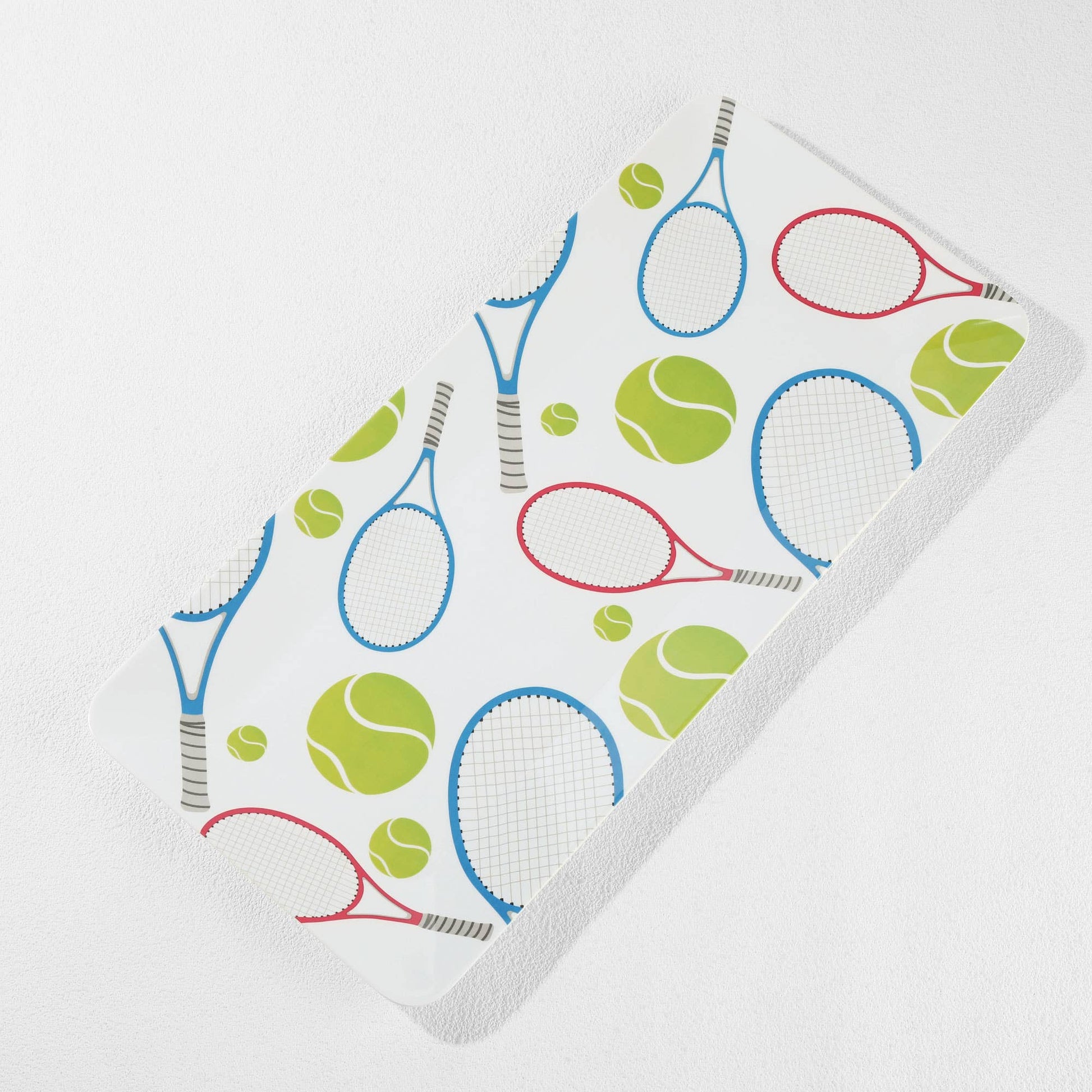 Features vibrant tennis rackets and ball patterns, adding a playful and energetic vibe to your serving experience.