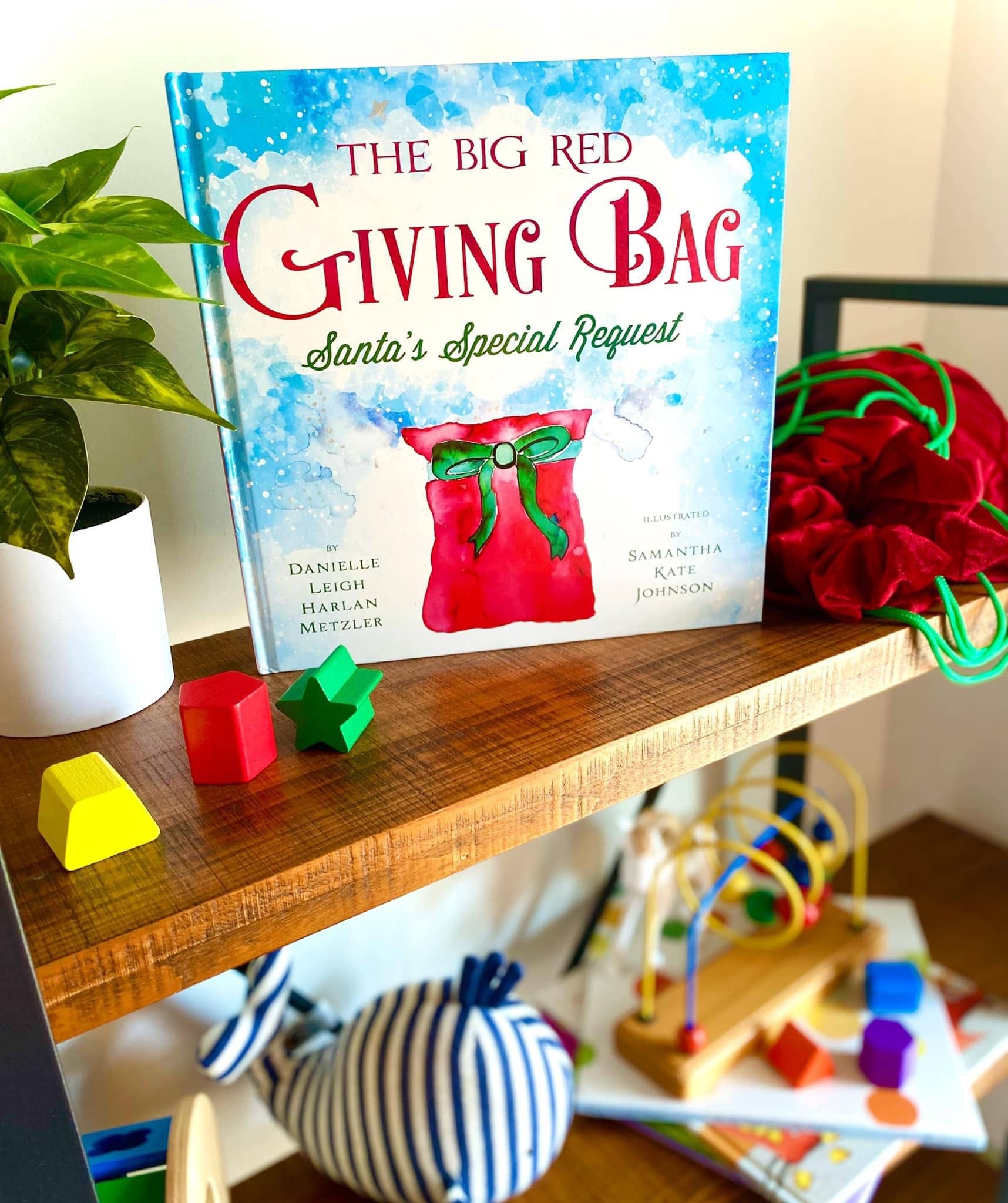 The Big Red Giving Bag tells the story of a busy Santa who is asking for help gathering toys. He has sent the child their very own Giving Bag, and asks them to fill it with toys they no longer play with or that they have outgrown. They place their filled bags under the tree on Christmas Eve and when Santa comes that night he "takes their bag", fixes up their toys and delivers them to kids in need!