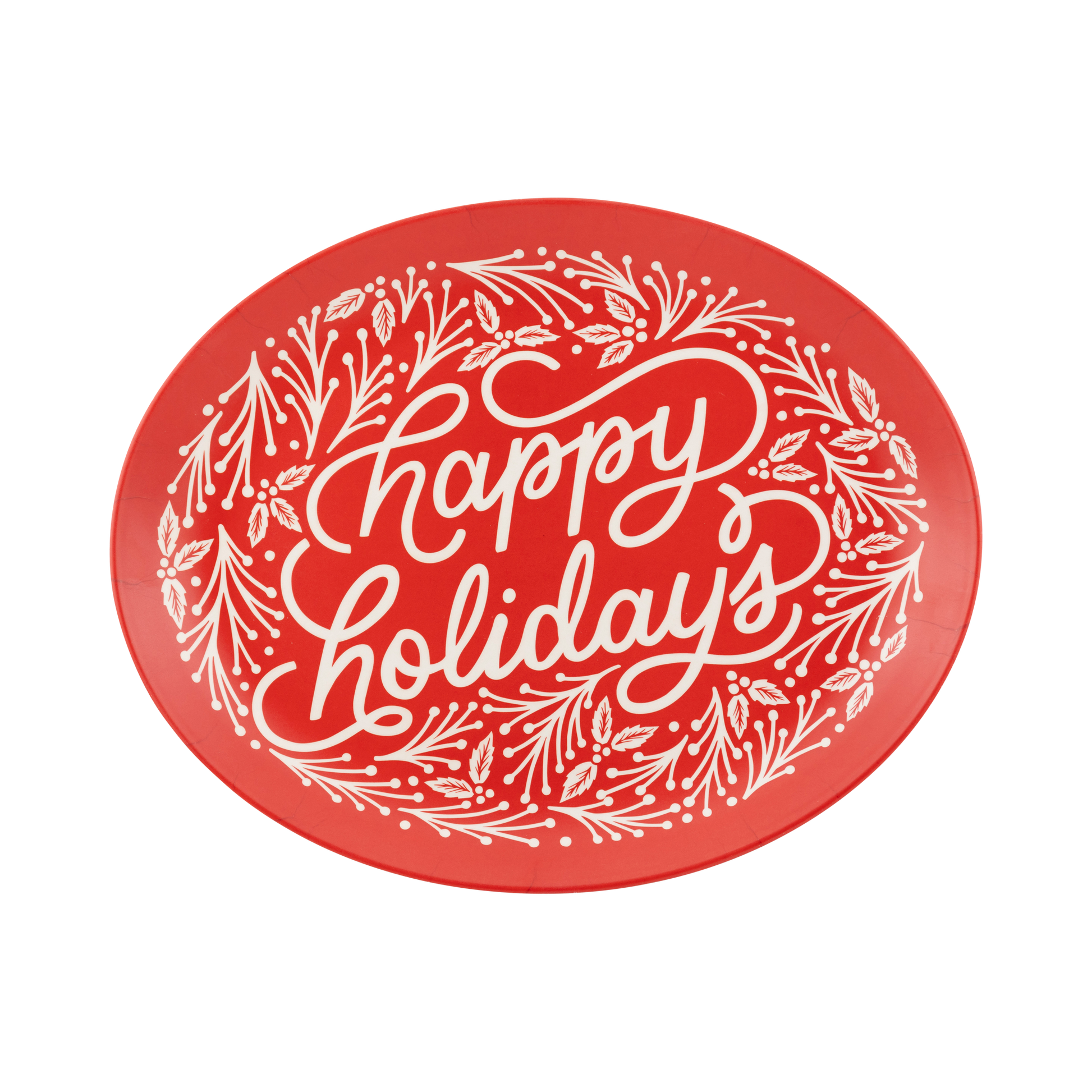 Spread some holiday cheer with our Happy Holidays Bamboo Tray! This oval tray, measuring 12x15 inches, is perfect for serving festive treats or displaying your holiday decor. Made from durable bamboo, it's both functional and festive. Happy holidays indeed!