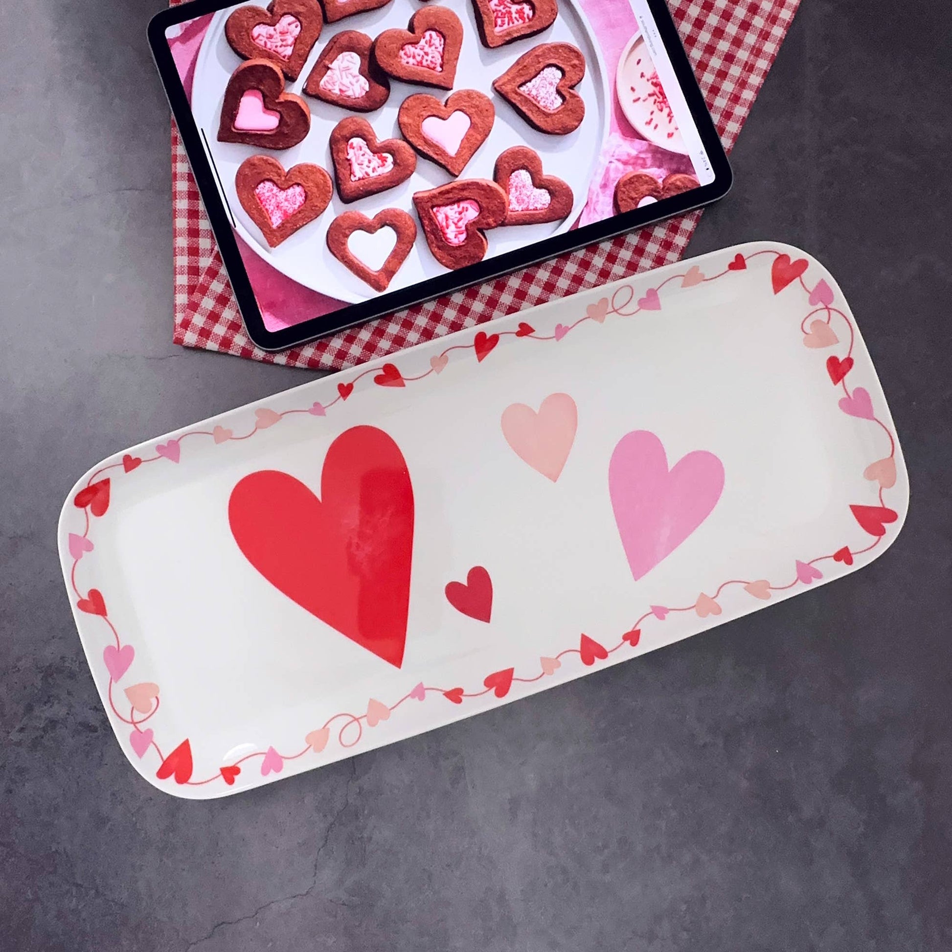 Set the mood for a romantic Valentine's Day meal with our Valentine Melamine Serving Tray. This tray features a delightful heart pattern, designed to celebrate the love and affection of this special day and add a touch of romance to your dining experience.